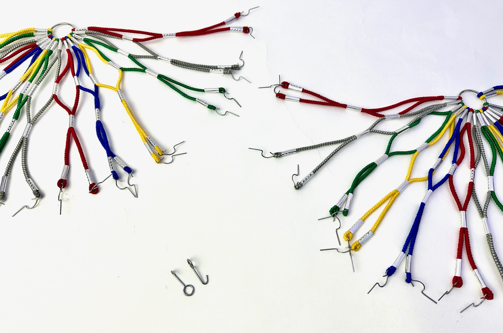 - Die 2 mitgelieferten Haken werden z.B. am Anlötsockel der Schutzblechstreben oder Gepäckträgerstreben montiert und können dort den Ring der Mitte des Kleidernetzes aufnehmen.