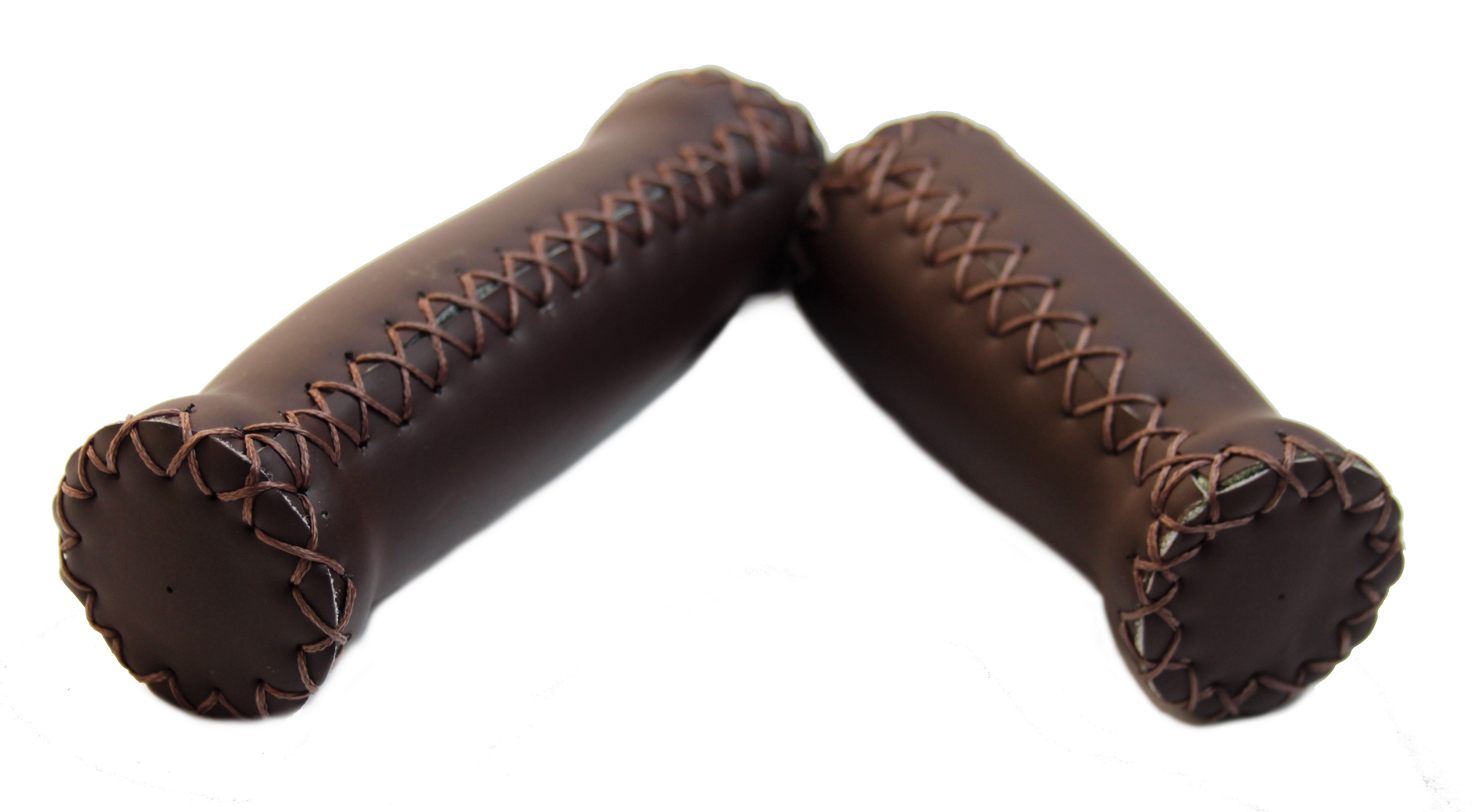 Ledergriffe (Kunstleder) dunkelbraun mit Außennähten kurz und lang