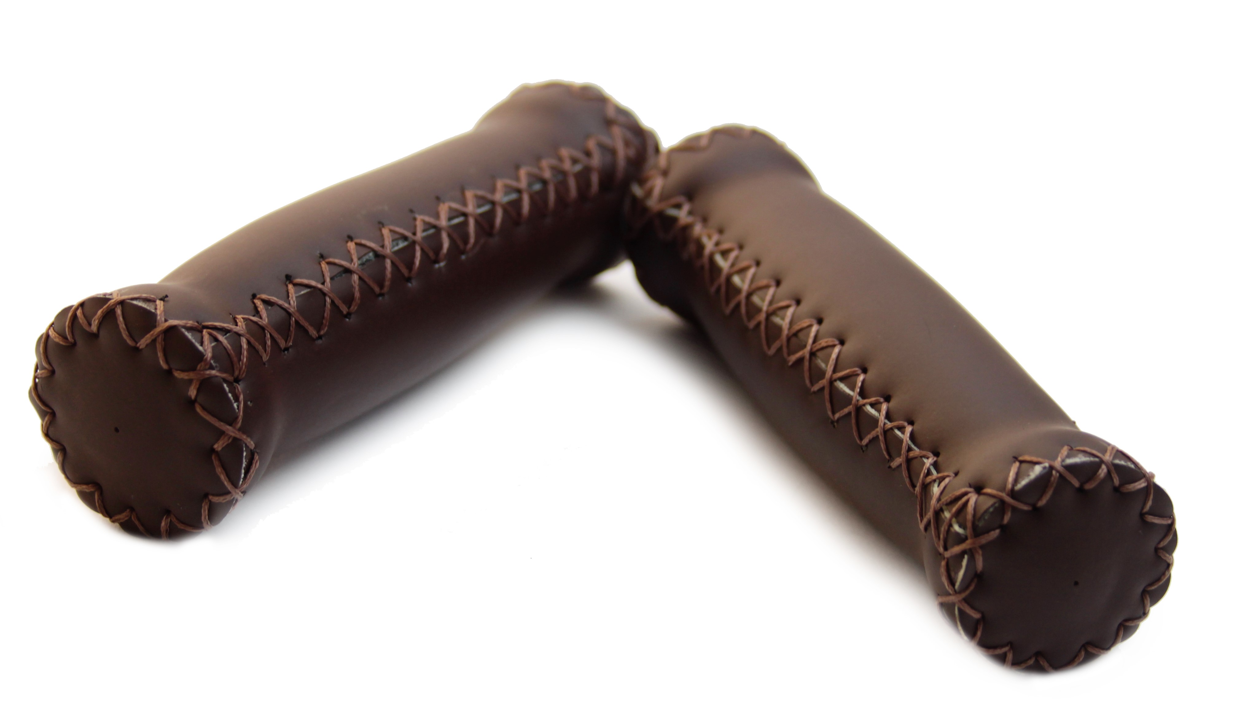 Ledergriffe (Kunstleder) dunkelbraun mit Außennähten