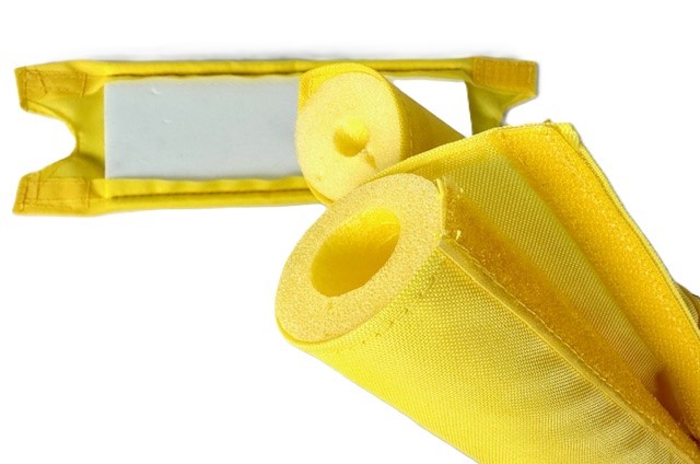 Dieses dreiteilige Schutzpolster-Set in leuchtendem Gelb ist das perfekte Accessoire für jeden Old-School- oder Retro-Build.