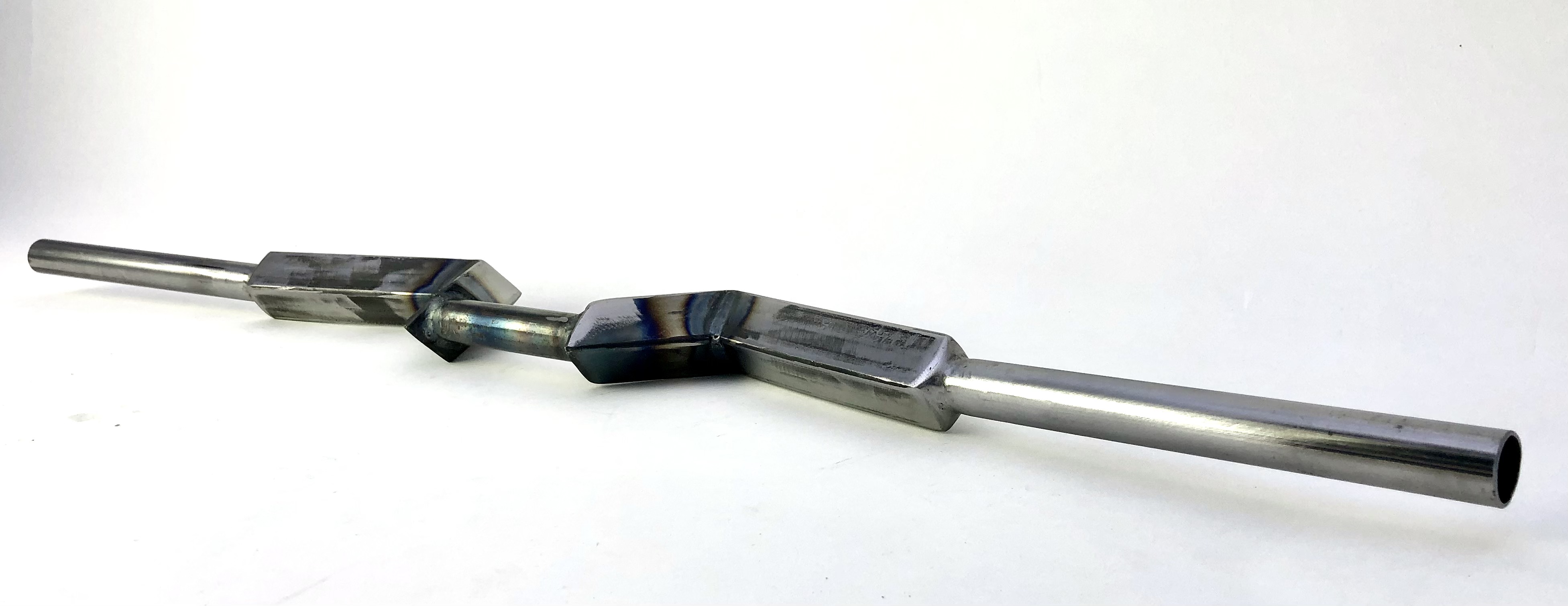 Gebaut aus formschön, gebogenen Vierkantrohren kombiniert mit normalen 22,2 mm Rundrohren für die Vorbauaufnahme und die Griffe.