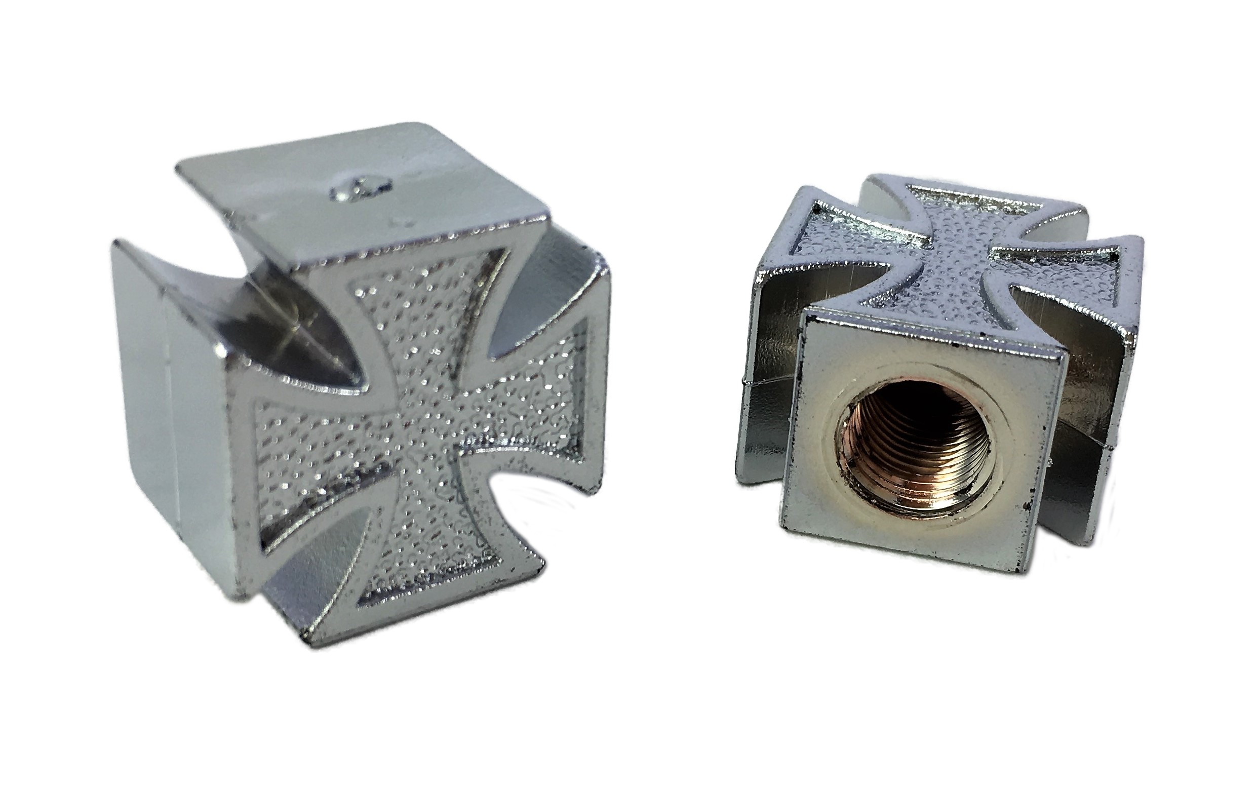 1 Paar, Eisernes Kreuz, verchromt , toller Custom-Look für dein Motorrad, Auto oder Bike! Passend für alle Standard-Norm-Ventile (M 8) AV.